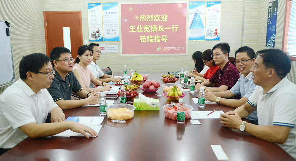 2018年8月2日星期四上午10點,東坑鎮領導一行成員:東坑鎮鎮長王業寬先生,黨委李進強先生,科技局主任王蓮輝女士,鎮經濟科技信息化局黃劍豪先生親臨鎮倍增計劃主要企業---金祿科技指導并培訓宣講倍增計劃核心政策。龍金祿董事長率公司核心領導全程陪同。